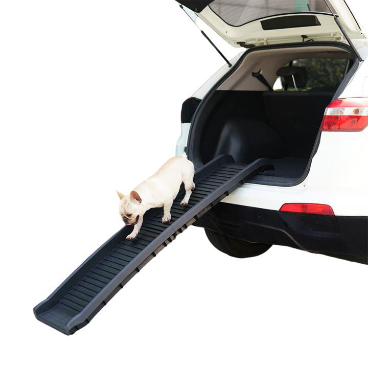Rampe for hunder kan ha maksimal lengde for å beskytte hundens ledd, korte ramper kan skape en bratt vinkel, noe som gir ekstra belastning på vennens ledd og ryggrad, noe som til og med kan skremme dem til å hoppe ned. Våre hunderamper for store hunder med sin ekstra-lange lengde på 62" reduserer effektivt leddstress og minimerer muskelbelastninger og smerter forårsaket av hopping. Perfekt for eldre, funksjonshemmede, kort-beinte eller skadede valper, den sikrer trygg og enkel biltilgang for din pelskledde venn.